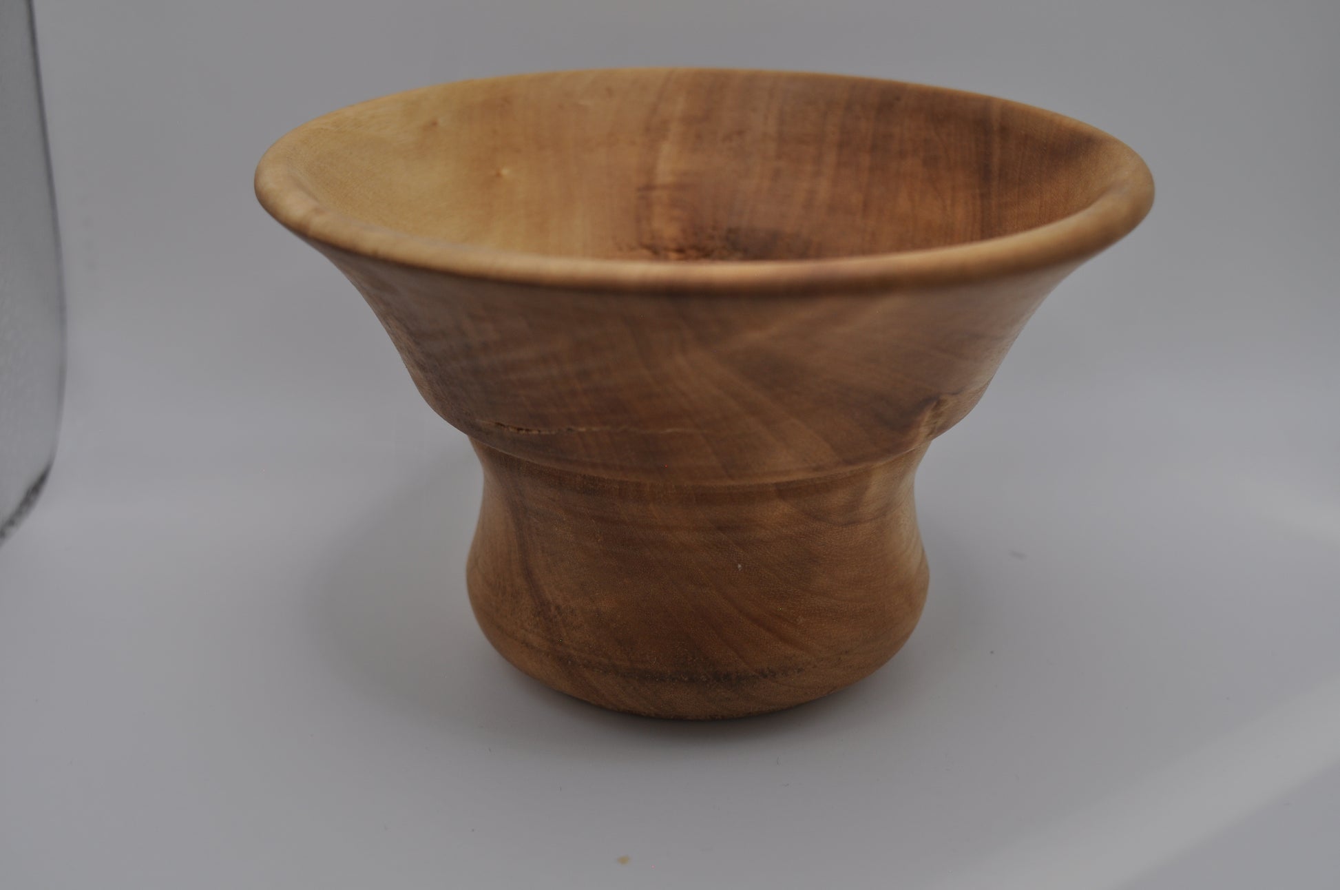 Made of California Black Cottonwood. This tall irregular shaped bowl is finished smooth with uniform wall thickness. The unique shape is great for holding fruit or other items as a table centerpiece. The finish coat is danish oil.